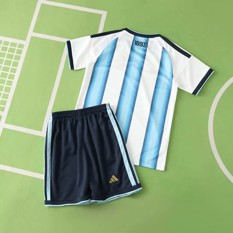 Argentina 2026 otroški domači nogometni dres – komplet za World Cup 2026 je popolna izbira za mlade navijače, ki želijo pokazati svojo strast do La Albiceleste. Klasične bele in modre črte so oblikovane s sodobnim prelivom treh odtenkov modre, kar spominja na največje uspehe reprezentance iz preteklosti. Na prsnem delu izstopa grb, ki jasno pokaže podporo vaši najljubši ekipi.