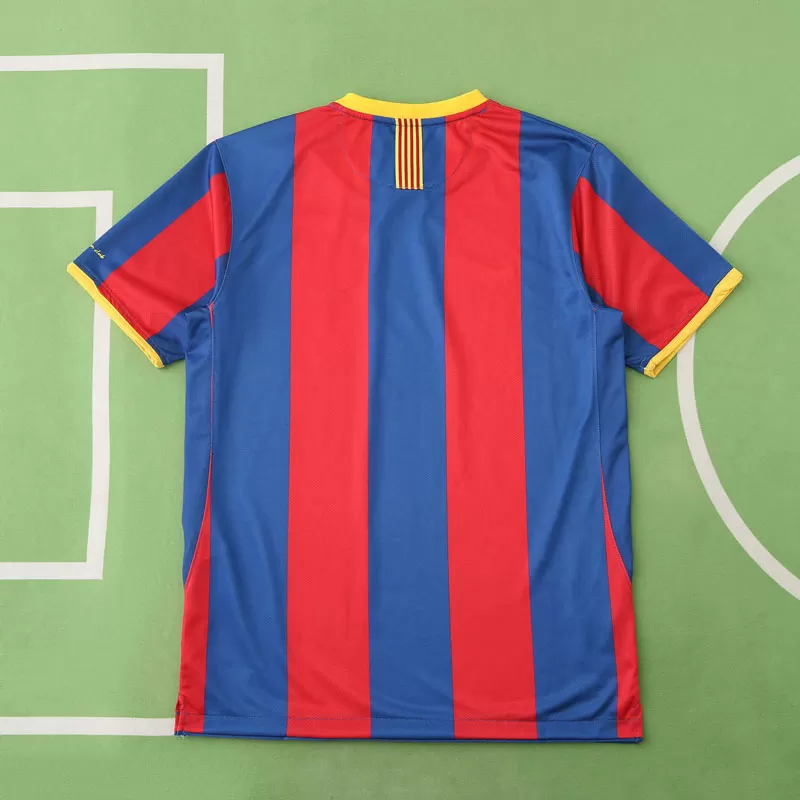 Retro FC Barcelona 2010/11 domači dres – moška nogometna majica je idealna izbira za vse prave navijače, ki cenijo zgodovino in tradicijo kluba. Klasične rdeče-modre navpične črte, poudarjene z rumenim ovratnikom in robovi rokavov, dajejo majici ikoničen videz, ki je zaznamoval eno najuspešnejših sezon v nogometu.