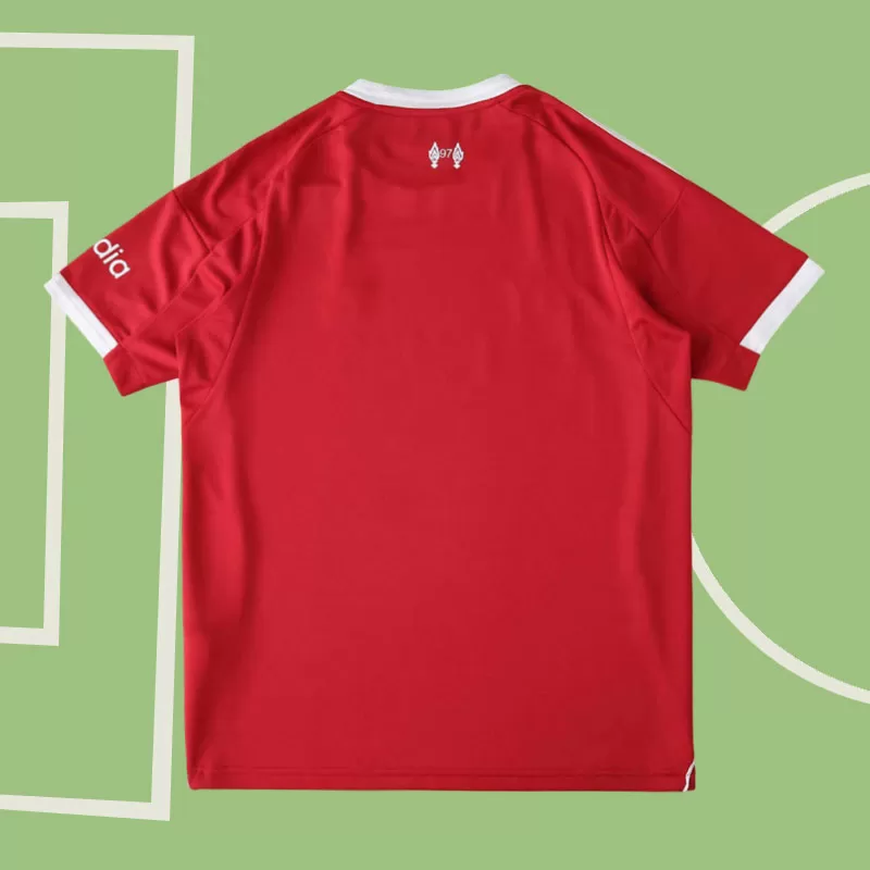 Liverpool moški domači nogometni dres 2025/26 prinaša klasičen videz z moderno noto. V značilnem odtenku Strawberry Red in z belimi detajli izraža srce in zgodovino kluba. Ta dres, ki ga nosijo zvezdniki, kot so Mohamed Salah, Virgil van Dijk, Darwin Núñez, Federico Chiesa, Dominik Szoboszlai in Diogo Jota, je prava izbira za vsakogar, ki želi začutiti utrip Anfielda. Izdelan iz lahkega, zračnega materiala, ki nudi udobje tako na igrišču kot izven njega. Možnost personalizacije z imenom in številko najljubšega igralca omogoča popolnoma edinstven videz. Na voljo je hitra dostava, zato ne odlašajte – oblecite se v barve svojega kluba še danes.