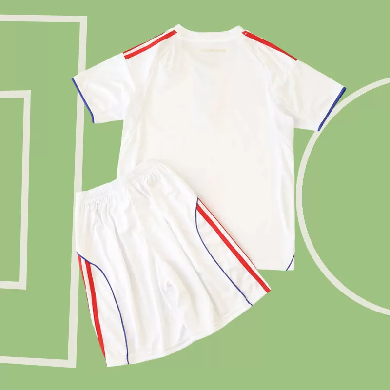 Pripravite svojega malega navijača na novo sezono z Olympique Lyonnais 2025/26 otroškim domačim nogometnim dresom. Komplet vključuje majico in hlačke, izdelane v klasični beli barvi z značilnimi rdeče-modrimi črtami, ki poudarjajo tradicijo kluba. Drobne modre obrobe in rdeče črte dodajo sodoben videz, medtem ko udoben kroj zagotavlja prijetno nošenje med igro ali navijanjem.
