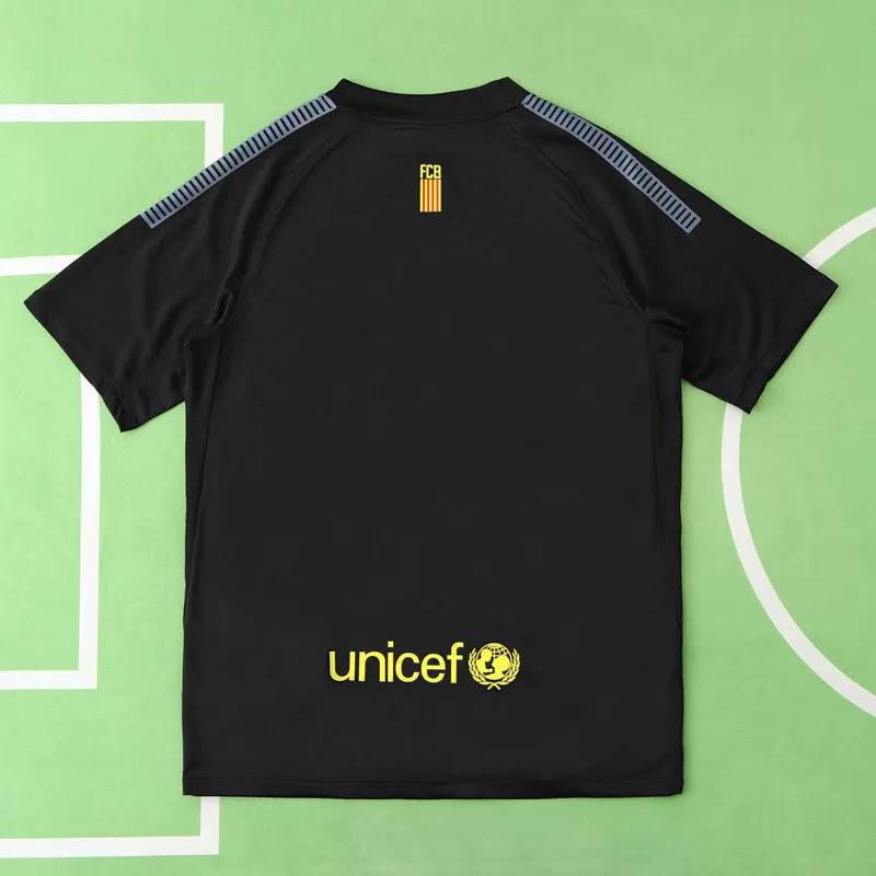 Doživite legendarno sezono s Retro FC Barcelona 2011/12 gostujoči dres – moška nogometna majica, ki ponazarja eno najbolj prepoznavnih obdobij v zgodovini kluba. Ta črna nogometna majica je postala prava klasika med navijači, saj je bila del zadnje sezone, v kateri je moštvo osvojilo Copa del Rey in navdušilo z napadalnim slogom igre.